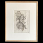Soft primer is a fatty etching primer that protects the plate so that only the exposed metal is exposed to acid during etching. In these prints, it is an impression of physical leaves in the soft ground that forms the motif.