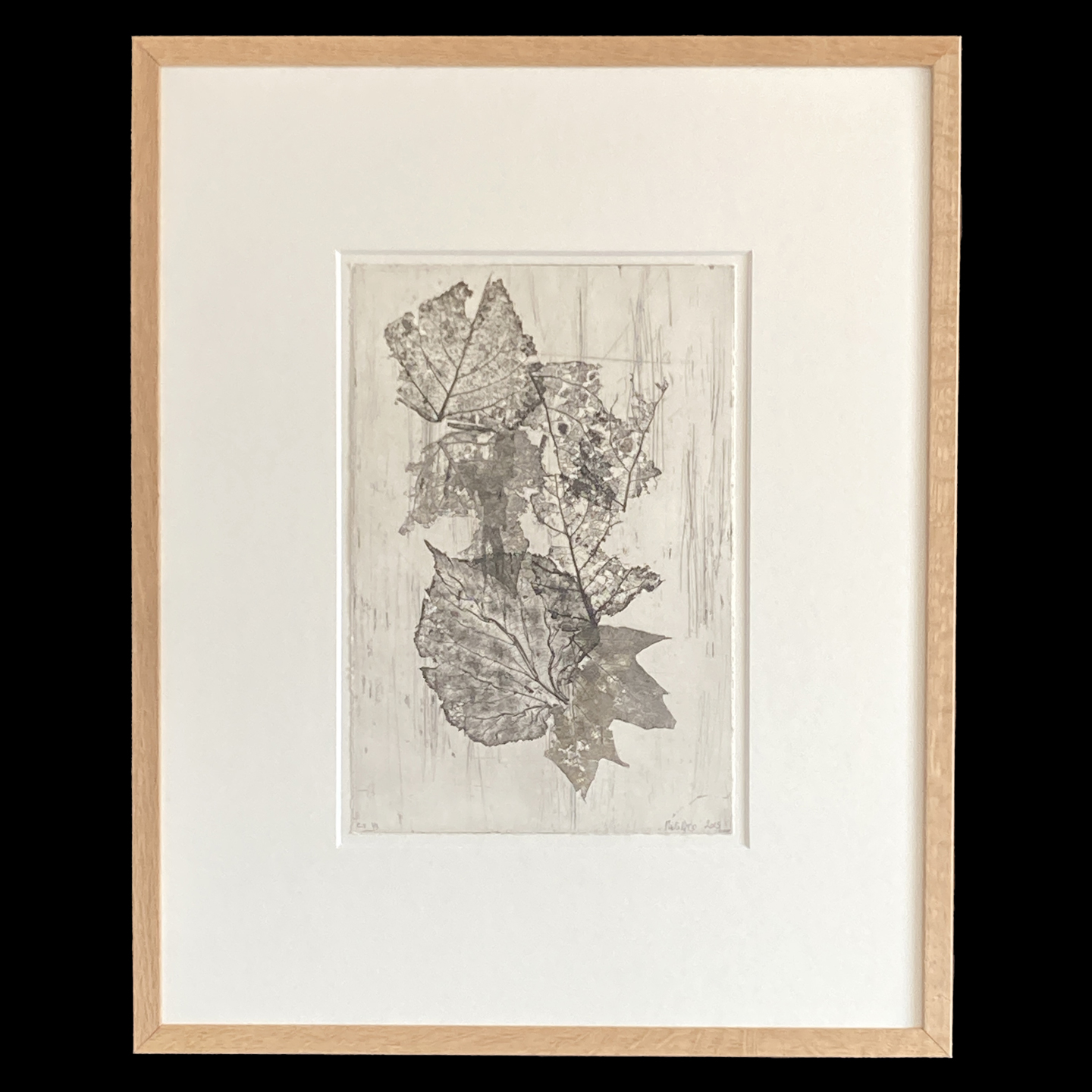 Blødgrund er en fedtholdig ætsegrund, der beskytter pladen, så kun det blotlagte metal udsættes for syre under ætsningen. I disse print er det et aftryk af fysiske blade i blødgrunden, der danner motivet.