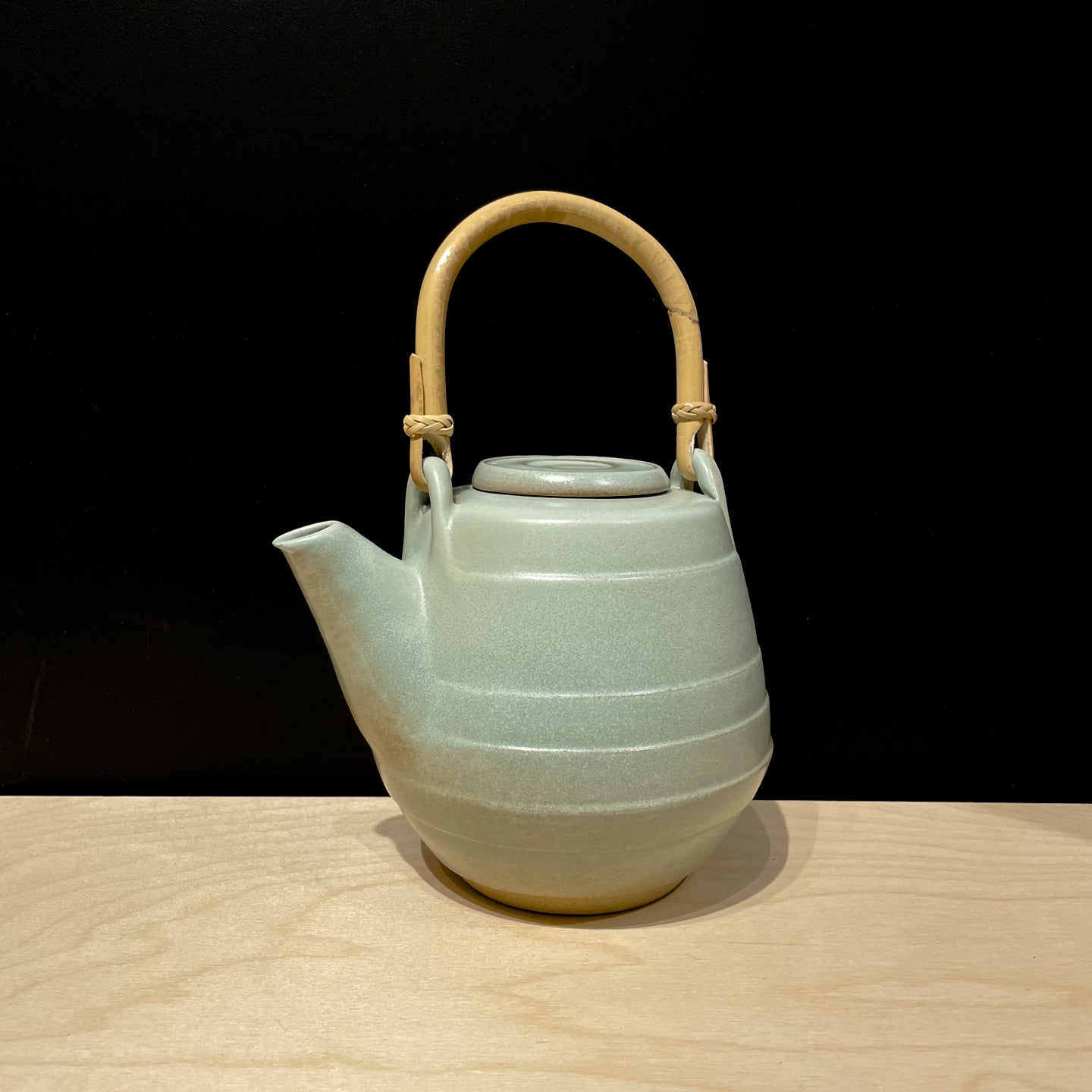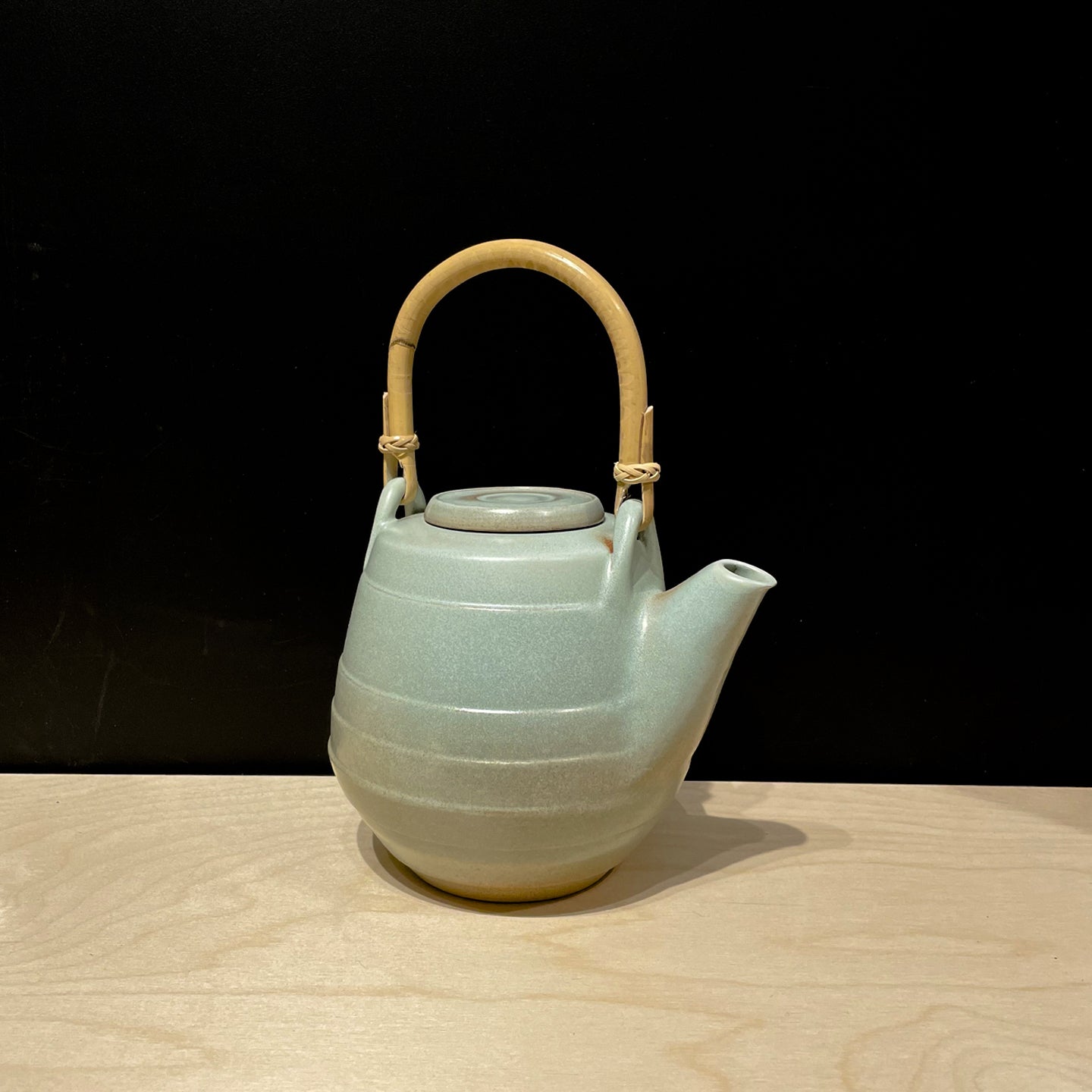 Hand-turned ceramic teapot in blue glaze.